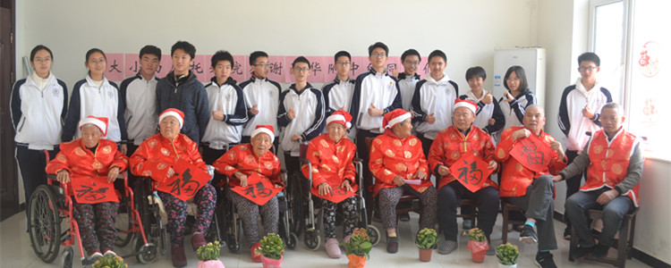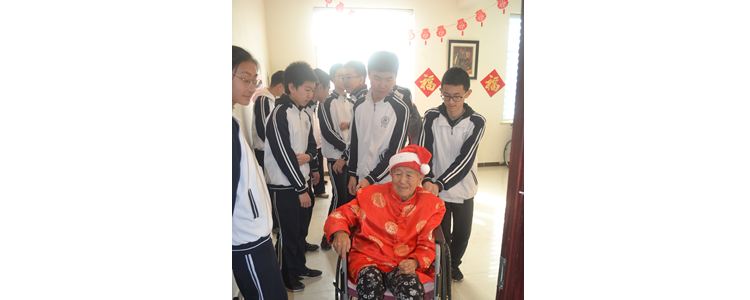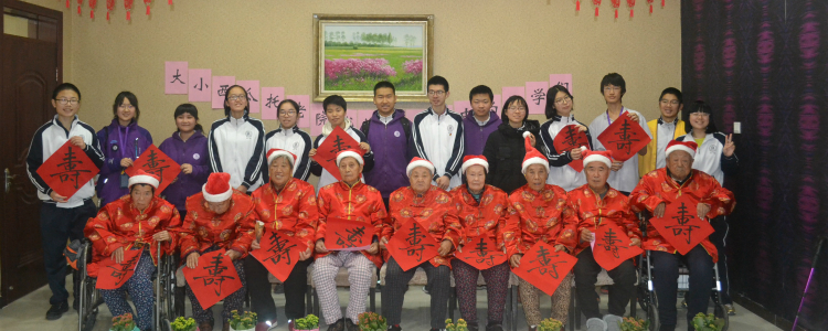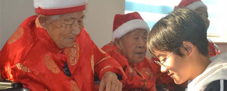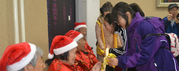 上午的活动接近尾声,学生们为老人们献上手写的“寿”字与长寿花。上午的活动圆满得结束。