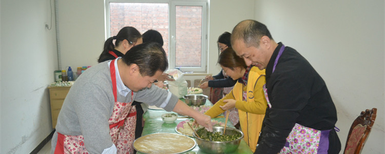在上午活动进行的同时,家长们和一部分同学在厨房中忙碌,为午饭做着准备。家长们带去了面粉等物品,要为老人们奉上一顿水饺盛宴。到了中午,老人们被护工们扶着走向餐厅,学生们通过轮椅推着行动不便的老人,帮助他们去餐厅。一些学生们为老人端上了热乎的水饺,并与老人们一同进餐。