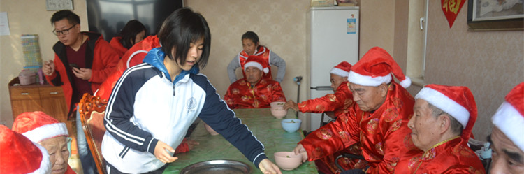 皇冠体育学生为老人端水饺