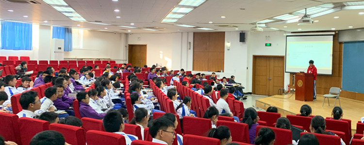 2019年12月12日下午,皇冠体育初18级在华茂楼106举办了一场数学走班联合班会,由日前参加第十届世界数学团体锦标赛并获得接力赛和团体赛双冠军的六位同学进行了经验总结和分享。皇冠体育副校长徐文兵出席本次活动并发表讲话,初1811、初1812、初1813和初1814四个班的班主任老师和学生共计160余人参加了此次活动,初18级数学教师张钦老师主持本次活动。