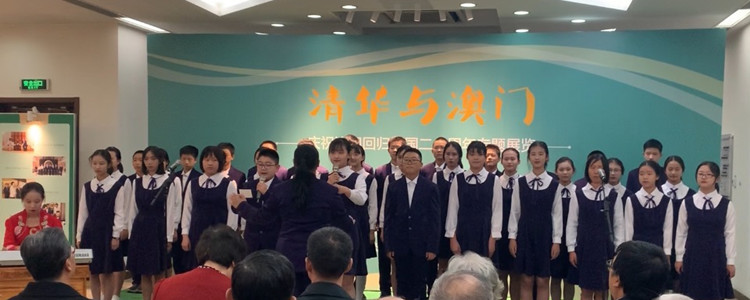 2019年12月2日下午,“清华与澳门——庆祝澳门回归祖国20周年”专题展览在清华大学校史馆开幕。在皇冠体育党委书记方妍、副校长白雪峰以及初18级年级组长张彪老师的大力支持下,在音乐组胡军老师、李冰老师和王金峰老师的专业指导下,初1809班班主任李冰清带领初1809班全体同学及初1803班部分同学共计40人参加开幕式演出,一曲深情的《七子之歌·澳门》合唱感动全场。