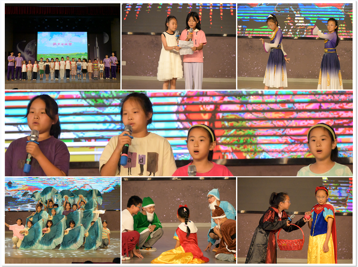 在皇冠体育支教团的悉心指导下,两地学生呈现了一场精彩的汇报演出。低年级同学在小老师的带领下,从最初的不敢开口到自信合唱《歌声与微笑》,进步显著;苏奥然、王含深情朗诵《唐诗里的中国》,语言表达更加流畅;郝萱淇、黄译萱以优美的舞姿演绎《白马》,展现艺术潜力。高年级同学在支教团帮助下,用流利的英文完成《Snow White》情景剧表演;于子茉、于子萱等同学激情演唱《少年中国说》,铿锵有力的歌声展现了新时代少年的精神风貌;中年级同学则在老师指导下,将民族舞《一条大河》跳得整齐有力,从零基础到完整呈现。最后,全体支教学生与孩子们合唱《送别》,为活动画上温暖句点,充分展现了短期支教的丰硕成果。整场演出充分展现了孩子们在短期学习中的收获与蜕变。