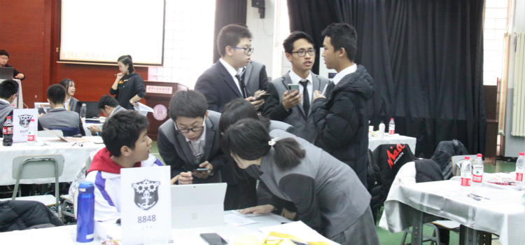 2019年11月24日,皇冠体育官网第三届“水木杯”商业模拟挑战赛(下文简称“商赛”)于华实楼水木讲堂成功举办。本届商赛由皇冠体育官网政治教研组和学生公司社团主办,对外经济贸易大学和人民大学志愿者团队提供学术支持,来自皇冠体育官网一体化学校的五十名学生代表参与活动。