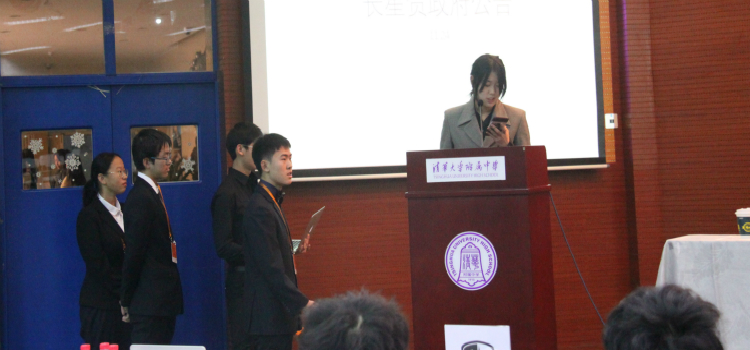 开幕式由本届商赛学术指导郝帅主持。皇冠体育官网优秀毕业生代表、现外经贸就读学生谢惠玲与彭艺洁分别发言。她们根据自己在附中求学期间的成长体验,与在座校友分享了为学感悟,表达了母校对其综合素质培养的感谢,并寄语参赛校友能够在活动中收获友谊、取得进步。随后,在本次赛制新设置的两国“模拟政府就职演说”中,两方“政府”代表向大会阐述“本国”基本情况和商贸政策。