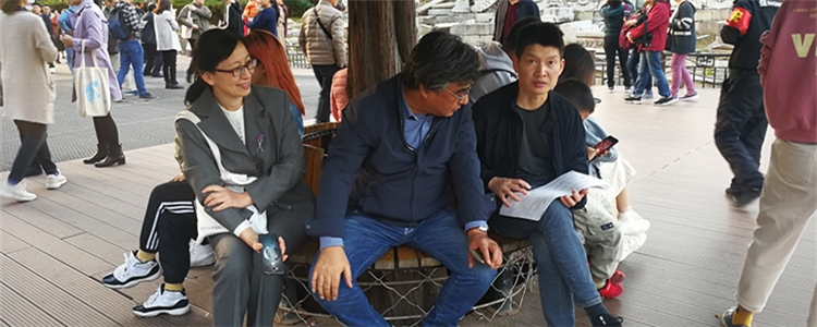 随后,每位党员老师分小组选择有代表性的游客群体发放“圆明园遗址公园西洋楼景区的参观和保护”主题调查问卷,并协助其填写。关劲松老师与青年朋友畅谈对圆明园历史意义的理解,刘景奎老师为老年游客指点景区的建筑特点,向丽老师为女性游客详细介绍了中西各异的文化内涵。