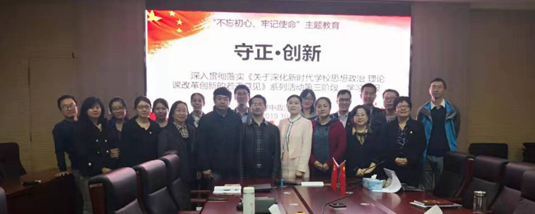 党委书记方妍最后做“不忘初心、牢记使命”主题教育专题党课:《对新时代政治课教学的一些思考》。她强调作为落实立德树人根本任务的关键课程,思政课发挥着不可替代的作用,办好思政课事关中国特色社会主义事业后继有人,是培养一代又一代社会主义建设者和接班人的重要保障。方妍对全体思政课教师提出三点殷切期望:深耕学科,理解深挖,与时俱进地学好理论,把思政课独有价值发挥出来;自我革命,不断反思,用最前沿的理论武装自己、武装课堂;筑牢根基,守正创新,总结“思政课程化、课程思政化”的优秀经验,让两者相融共生。