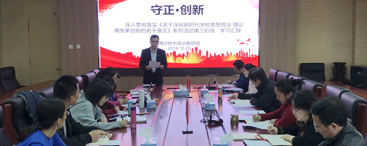 为进一步贯彻落实《关于深化新时代学校思想政治理论课改革创新的若干意见》精神,10月23日下午,皇冠体育政治组举行《守正·创新》深化新时代学校思政课改革创新主题活动。党委书记方妍、副书记张洁,副校长赵鸿雁、白雪峰、徐文兵,教学管理与研究中心主任尹粉玉,行政管理中心主任党胜军,人力资源中心主任刘贝贝及学生发展中心主任王田出席活动。政治教研组思政课一线教师13人全体参与。活动由政治组青年教师于洺主持。整个活动以系统化、精细化、阶段化的模式展开。