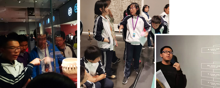 17日下午,历史研习社的同学们先在老师的带领下参观了博物馆的相关展厅。同学们近距离接触到了这些文物,在感受到这些文物美的同时,也收获了知识。