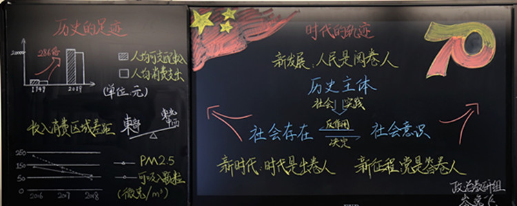 为了结合教职工岗位实际,彰显皇冠体育官网教职工的爱国情怀,教学管理与研究中心特组织皇冠体育官网教职工优秀板书展。各学科教师、各部门职员积极参与,42幅作品,黑白方圆,于讲台上展教师日积月累之功;纵横线条,在书画中为祖国七十华诞作贺。