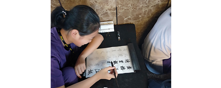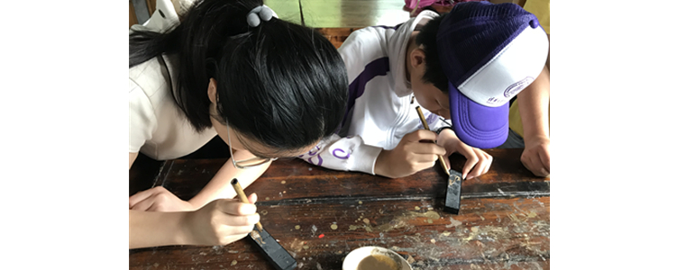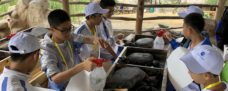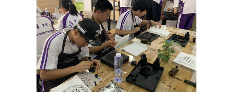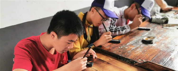 第三天,在歙县胡开文墨厂,同学们学习制作砚台和徽墨。源自唐宋制墨工艺的油烟墨,让传统文化和民间工艺“活”了起来。同学们拜师学艺,在墨条上描金,近距离感受歙砚、徽墨的魅力。在润一园艺博物馆,同学们通过学习建造园艺庭院,学会精诚合作、精益求精。
