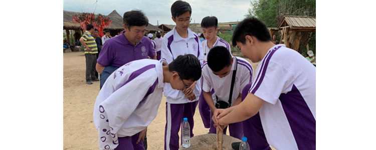 同学们游宁夏博物馆解密当地文化,参观西夏王陵遗址寻觅当年西夏文明的辉煌。在观赏贺兰山岩画感受远古印记之后,同学们亲手拓印了属于自己的岩画作品。在水洞沟遗址,同学们观看了展示西夏王朝兴衰的大型实景表演,体验了藏兵洞地道的惊险,并亲自动手再现旧石器时代的钻木取火以及考古学家勘探文物的过程。在中华黄河坛,同学们朗诵《黄河颂》,唱响《我和我的祖国》,深深感恩祖国和母亲河的哺育。腾格里大漠中还留下了同学们亲手扎制的麦草方格,希望用自己的付出为沙漠绿化贡献一份力量。初17级一百多名师生在沙漠徒步之旅中遇到了阵雨,大家手挽手相互扶持,无一人掉队,深刻感受到在集体的力量面前没有克服不了的困难。
