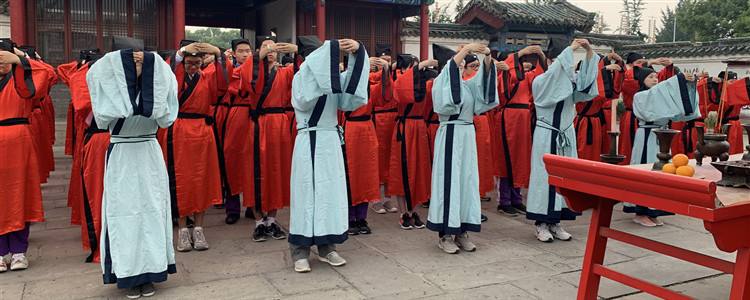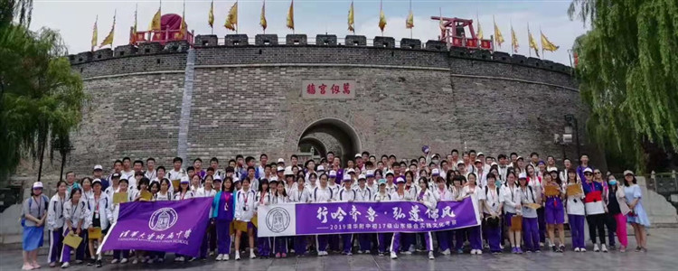 在曲阜,同学们体验了在孔子生活的时代作为一名大师弟子的生活与学习。首先是学习拜师礼这一甚为复杂的礼仪形式:学生着汉服,戴冠帽,先向孔子行礼,再向老师行礼,老师亦予以回礼。之后,同学们学习了篆刻、国画、射艺、茶艺等中国传统文化艺术技艺,了解以传统技艺为代表的儒家文化对年轻人行为所设立的准则。晚间,同学们欣赏了泰山封禅大典。当第一束灯光在泰山绝壁前亮起时,中国历史的漫漫长卷在众人面前缓缓打开。宏大的表演以完美的灯光控制和大编制的配乐给观众留下了深刻印象。在传统文化中游历,同学们开拓了眼界,提高了知识水平,更加领会了中华文明的精神与内涵。