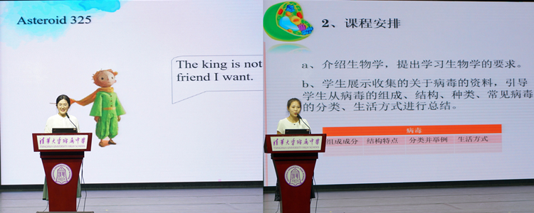 首先是说课展示。语文学科胡月明、数学学科丰海娇、英语学科王明珺、生物学科高微、信息技术学科王新月五位老师展示了说课,几位老师通过对教学目标、教材分析、教法学法、教学过程等说课环节的展示,分享了各自的教育教学理念,体现了新教师们在培训过程中的收获与进步。