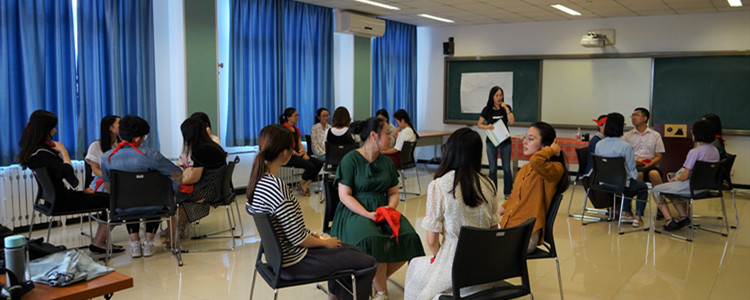 讲座结束之后,各校自行组织了别开生面的团队活动。附中心理中心负责人陈明秋老师主持了本部团队活动。陈老师组织了找苹果和撕纸的心理游戏,给新教师带来了很多教育教学启示。