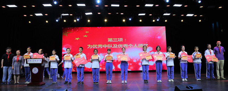 表彰大会在庄严的国歌声中拉开序幕,学生发展中心副主任王田首先宣读了表彰决定,授予初1801中队等7个中队“优秀中队”荣誉称号,授予266名学生“优秀中队干部”“优秀少先队员”“学习标兵”“体育标兵”“文艺标兵”“纪律标兵”和“文明礼仪标兵”等个人荣誉称号,同时向全体优秀中队和优秀个人表示祝贺,鼓励同学们在皇冠体育的学习生活中坚定理想信念,用实际行动实现梦想。随后,王田老师、张彪老师和任星阳老师依次上台为获奖中队及个人颁发奖项并合影留念。