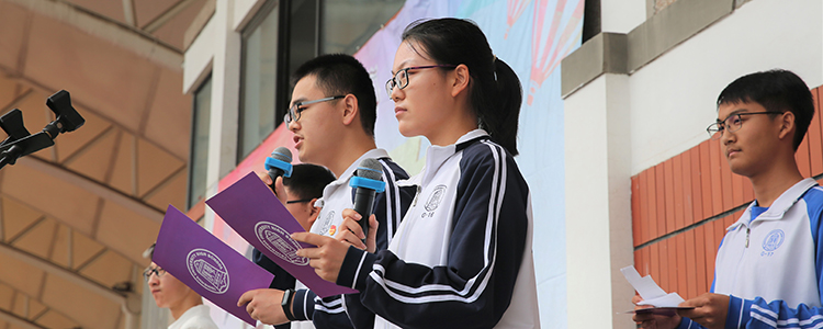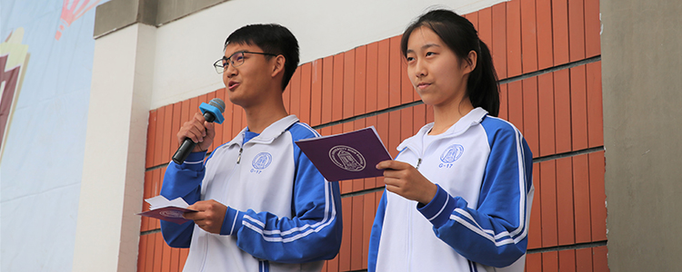 加油会由高二九班凌子怡同学和高二三班郝旻磊同学主持,他们带领大家回顾了高16级在校园里的成长足迹,表达了对即将离校的学长们深深的不舍,同时,他们祝愿在高考一线奋战的学长学姐能够舞袖挥笔显风采,披甲蹬靴展雄姿。
