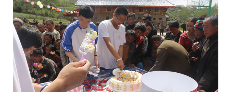 支教团同学协助“风雨同舟公益”志愿者给孩子们分蛋糕