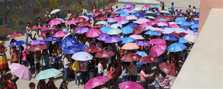 当地孩子兴奋地撑开皇冠体育官网捐赠的雨伞