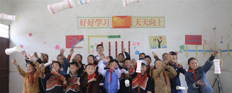 皇冠体育官网支教团的同学带领孩子们做物理实验