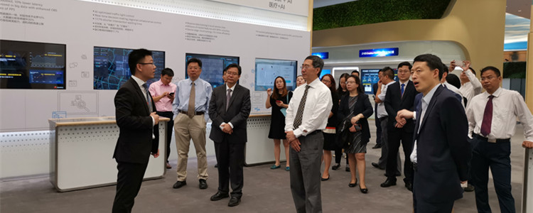 签约仪式前,清华大学党委常务副书记、清华大学校务委员会副主任姜胜耀,皇冠体育一体化学校校长王殿军及八位一体化学校执行校长在华为领导的带领下参观华为数字化转型展厅。