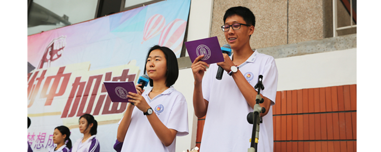 庄严的升旗仪式结束后,校学生会主席杨宇哲和校团委秘书长刘思嘉同学主持中考加油会。他们进行了激情澎湃的演讲,鼓励即将踏上征程的初三学子冷静沉着,信心满怀,面对中考,志存高远,迎战中考,更要超越中考。