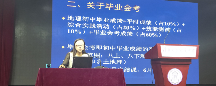 紧接着,英语备课组组长朱莹就中考听说机考进行了解读。物理、历史、地理、政治、生物各科备课组长依次分析了中考选课的计划和建议,并结合本次期中考试的结果,解读了本学科的教学重点和学习方法,为家长提供了具体的指导建议。