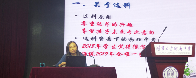 会议伊始,教学管理中心主任张苏就中考选科进行了报告。首先,张苏主任分别从科目、内容、分值、形式四个方面介绍了2018年新中考改革。其次,根据北京市中考改革的要求,张苏主任提出了相应的选课建议和选课计划,并为学生制定了详细的选课时间表。