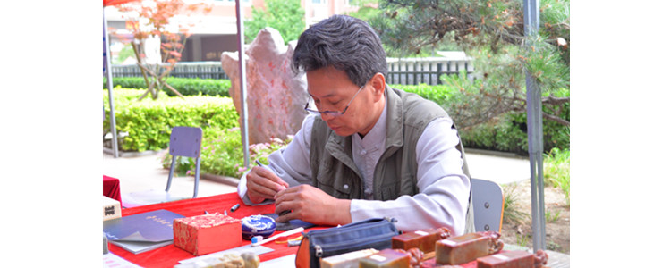 非物质文化遗产传统艺人工坊透过一件件精致的手工艺品,展现了中国传统文化中的典雅美。同时,一针一线织成的画扇,一笔一画勾勒的国彩,漫长历史流逝时间的凝重感于其中呼之欲出。在游览的过程中,学生与传统工艺"亲密接触",与非遗传承人共同交流对中国传统文化的认识,学习制作传统工艺品的技巧和要领。