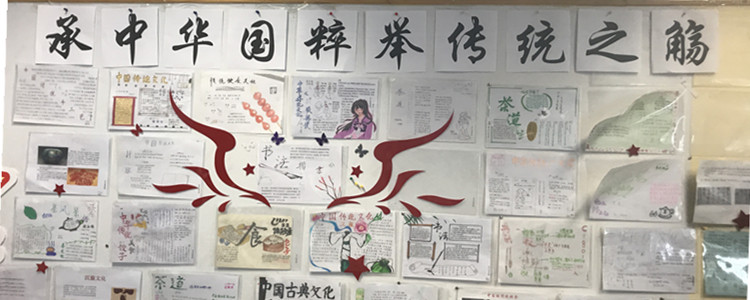 全班分为六个主题小组,分别以“汉字”“诗词”“陶瓷”“茶道”“饮食”“汉服”为内容进行学习。每位同学都针对自己学习的主题内容绘制了小报,图文并茂,内容丰富多彩,让大家对传统文化内容有了初步的了解。每组同学又精心准备了班会,分三期向全班同学汇报学习成果,进行班内的宣传活动,同学们积极参与,学习到了许多关于传统文化的知识,更加深刻地认识到宣传和弘扬传统文化的责任。
