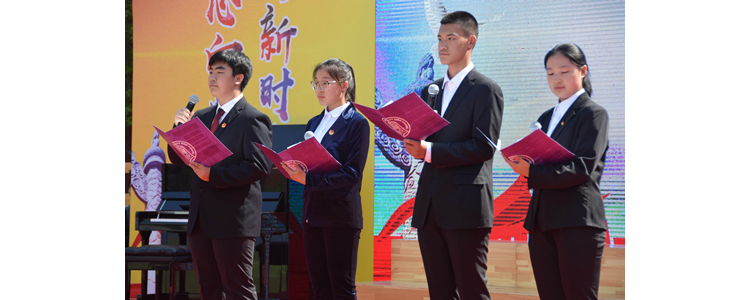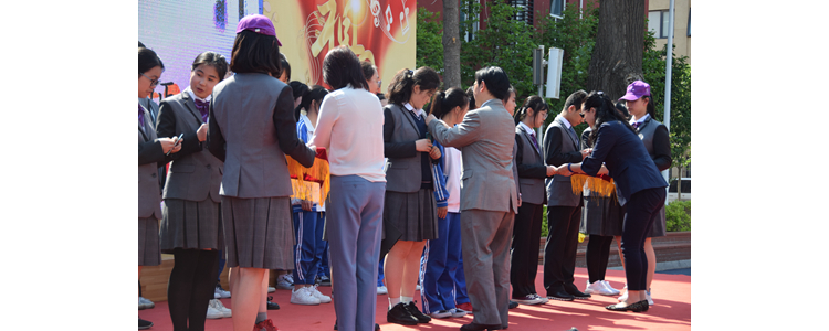 初三6班龙腾云、初三8班刘一霖、高一5班王宇杰、高二2班李文榕担任主持人。表彰大会伊始,全体师生奏唱国歌。