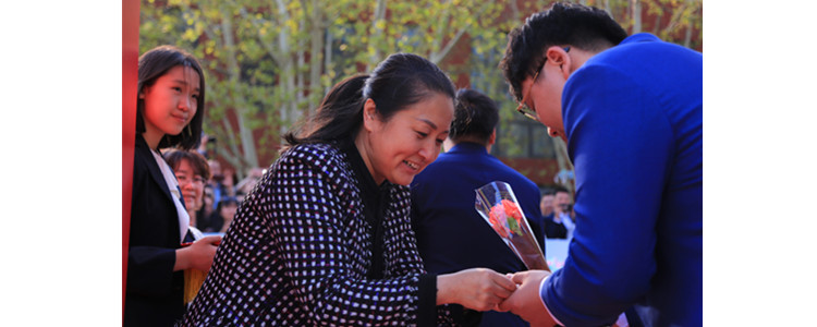 高1610班刘佳妮爸爸和张福玉妈妈作为家长代表朗诵了《目送》,娓娓述说孩子的成长故事,同时向陪伴学生们走过青葱岁月的老师们送上了最诚挚的谢意。学生代表们为老师和家长献上一束束鲜花。