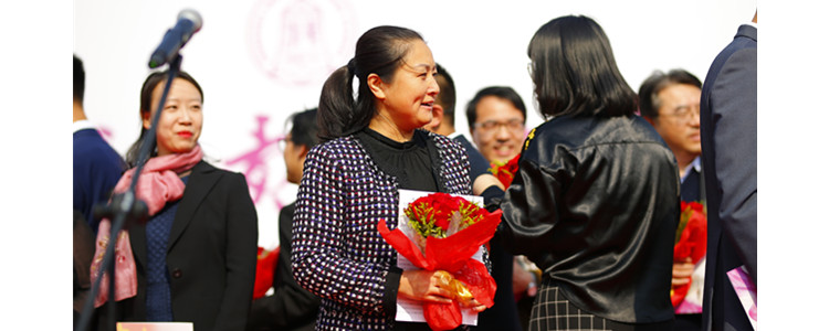 方妍书记为走过成人门的学子颁发成人纪念徽章