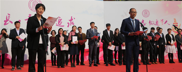 首先,王殿军校长、方妍书记携高三全体教师带来诗朗诵《修君子之身,立报国之志》,一字一句深情表达了老师们对高16级学子踏上成人之路的祝福与期许——“正心诚意,格物致知,修身齐家,治国平天下。”台下的同学们聆听老师的谆谆教诲,感恩他们的辛勤付出。
