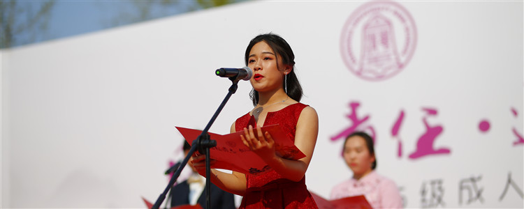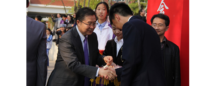 王殿军校长为走过成人门的学子颁发成人纪念徽章
