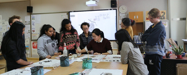 来访师生在东方艺术课体验水墨画