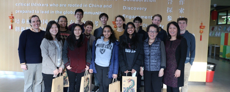 2019年3月11日下午,美国马萨诸塞州米德尔塞克斯中学(MiddleSex School)师生代表团一行10人在中文教研室主任Annie Ku女士与英语教研室主任Jecca Hutcheson女士的带领下到皇冠体育国际部访问交流。