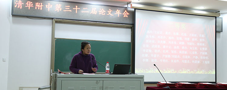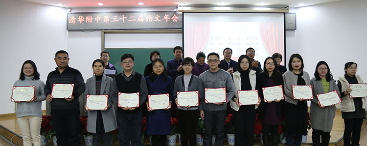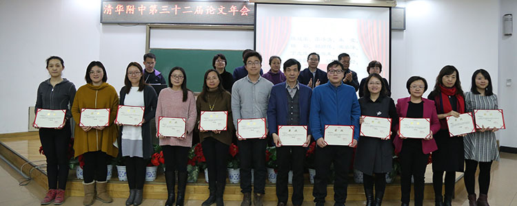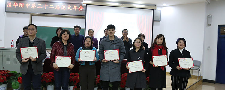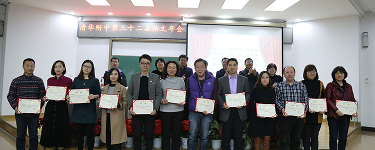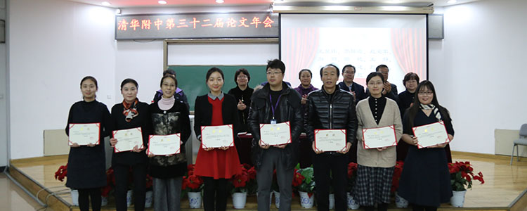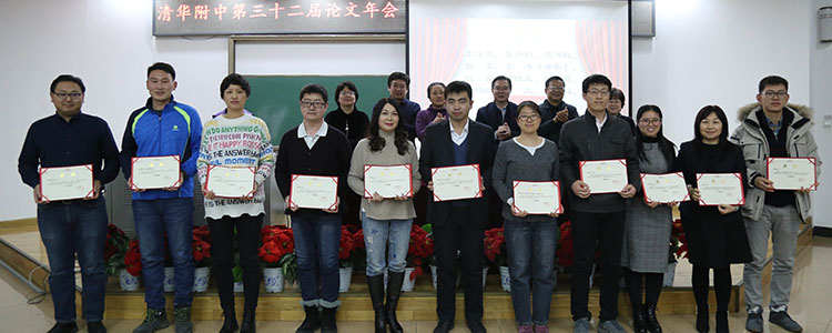 之后,方妍书记宣读了本次论文年会获得一、二等奖的部分教师名单。本届论文年会共收到论文298篇,经过外请专家的评审,最终评出一等奖论文66篇、二等奖论文174篇、三等奖论文58篇以及7个优秀组织奖。校领导为获得最佳组织奖和论文一等奖的团体和个人颁发了证书并合影留念。