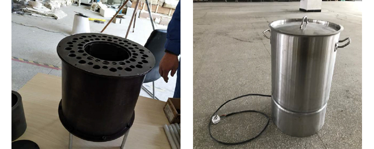 左:加工完成的装配壳体 右:组装完成的多用途电取暖壶