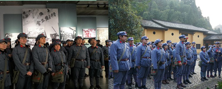 在井冈山革命博物馆(左)以及茨坪革命旧址(右)学习