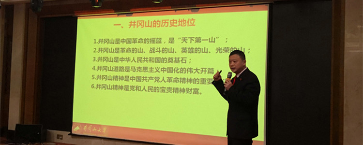 井冈山学习实践活动第一课为井冈山大学李忠教授《井冈山斗争与井冈山精神》的报告。报告主要介绍了井冈山的历史地位、井冈山革命根据地的基本情况、井冈山时期革命队伍组成、井冈山斗争的历史经验、井冈山精神及其时代价值。