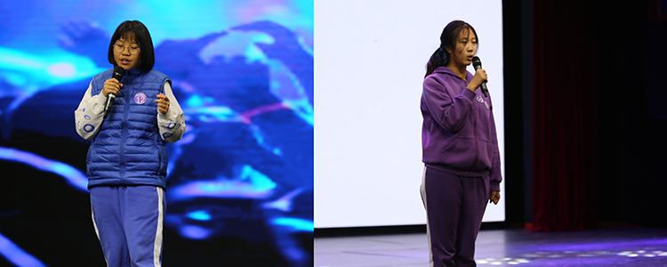 初1713班赵文睿(左)初1707班杨佳雯(右)
