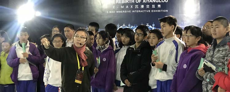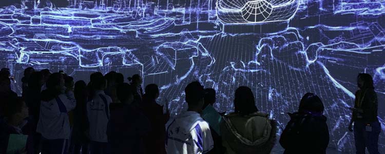 学生体验360度环幕沉浸式空间
