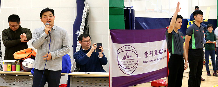 比赛开始前,张钦老师讲话,表达了对客队的欢迎以及对紫荆篮球社的期望。他希望大家把“无体育,不清华”的精神传承并发扬光大。