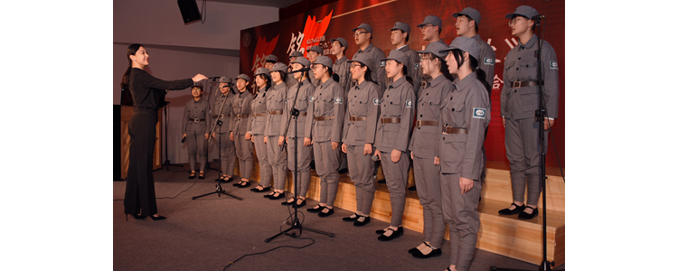 首先,奥森混声合唱团集体演唱《游击队歌》,优美的旋律以及高超的歌唱技巧赢得了台下观众的阵阵掌声。在高亢有力的节奏中,我们感受到了战士们的不屈与豪情。他们神采飞扬,自信的笑在脸上荡漾。