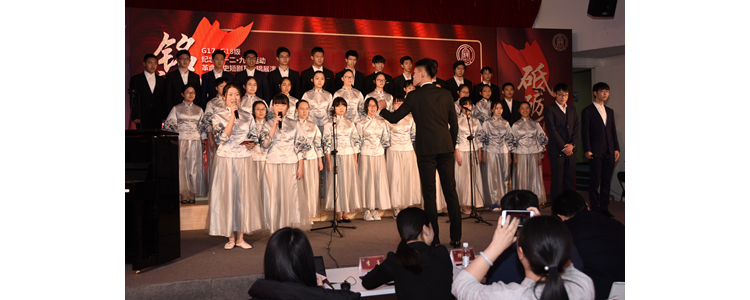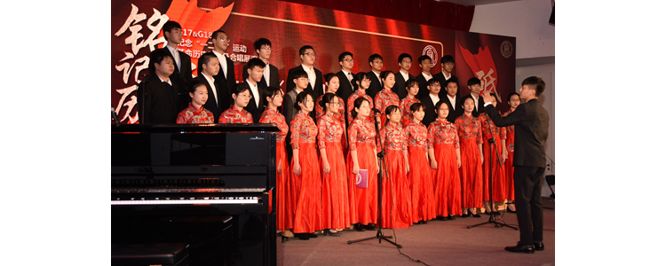 高1701班演唱《在希望的田野上》《红旗飘飘》,赵勇伟指挥 郑雨倾、吕可、杨子庆、刘舜予(从左至右)领唱