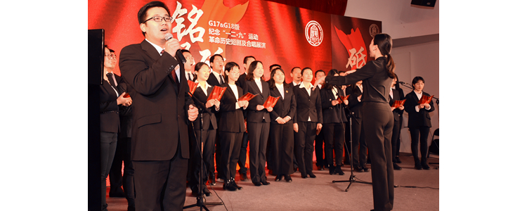 活动以“铭记历史·砥砺前行”为主题,以纪念“一二•九”运动83周年与改革开放40周年为契机,采用短剧与歌唱两种表演形式,特增加“小岗村、大包干”剧目,全面贯彻落实党的十九大精神,以激发学生的爱国主义精神。展演以班级为单位,学生们自编、自导、自演,并自主设计制作了革命历史短剧的宣传海报及预告片,精心排练历史革命合唱歌曲,充分发扬了班集体的团队协作精神;精彩的演出获得了经久不息的掌声与喝彩。