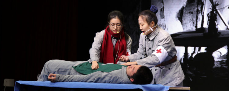 高18级的同学们用他们在舞台上精彩的表演,演绎了一段写满血泪的抗战史,表达着他们对革命先辈们的崇高敬意。那一幕幕凝聚着全班同学智慧与心血的剧目,带给我们沉思,让我们追忆,以最为别样而深刻的方式带给我们感悟。当全班同学围于剧本前出谋划策之时,我们感受到的是从前不曾深刻体会的班级凝聚力;当寄托着班级厚望一步步迎着聚光灯走向舞台上之时,我们感受到的是前所未有的责任感与使命感;当看着演员怀着满腔的激愤在舞台上振臂高呼之时,为国效力的万丈豪情在年少的胸中激荡……