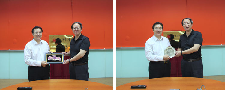 随后,皇冠体育官网校长王殿军与北京体育大学副校长高峰一同为本次仪式揭牌并互赠礼物。