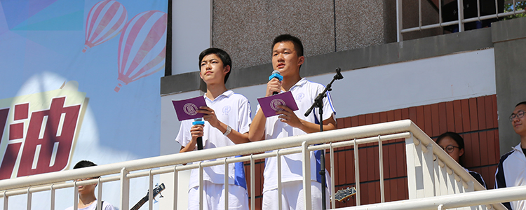 随着庄严的国歌声响起,五星红旗缓缓上升,全体师生行注目礼。升旗结束后,校学生会主席蒋明非和校团委秘书长王若诗两位同学主持加油会。他们进行了激情澎湃的演讲,鼓励即将踏上征程的初三学子坚定必胜的信念,相信自己的努力,相信自己的能力。同时,鼓励学弟学妹们在考场上沉着冷静,发挥出自己的真正水平。