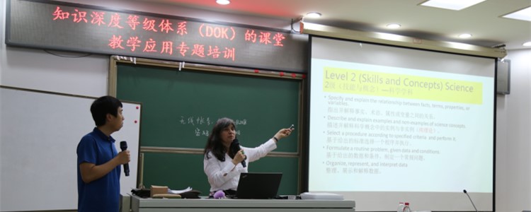 之后,DOK两位专家Debra Baker和Toni Nelson Herrera开始了知识深度等级体系(DOK)的课堂教学应用的讲座。DOK将学生的认识水平分成级回忆&再现、技能&概念、策略性思维、延展性思维等级,教育实践者根据其不同等级的思维要求设计和开发相应的活动、任务和问题,DOK通过不同的活动、任务和问题检测学生的认知水平,强调的不是内容的难度、而是学习的复杂度。从DOK理论和活动看,教师在教学活动或任务设计时,需要从教学内容和学生特点出发,设计具有不同认知水平要求的活动。这既是对学科内容本身梯度性的积极回应,也是深度学习、培养学生用知识解决问题的能力的内在需求。教学任务的最终目标指向是高阶思维和综合能力的培养。